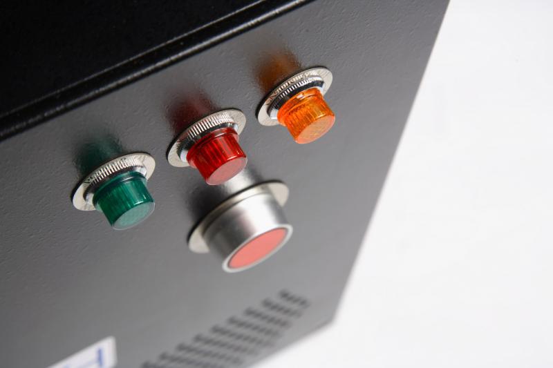The system also features a special operator control box with lasing "Start", "Stop" and "Emergency Stop" buttons for ease of use at your production site.
